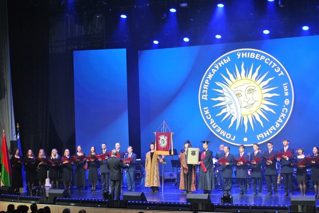 Завершающим аккордом в череде праздничных мероприятий, посвященных 95-летнему юбилею Гомельского государственного университета имени Франциска Скорины, стало торжественное собрание и праздничным концертом. Мероприятие состоялось в Гомельском областном общественно-культурном центре.